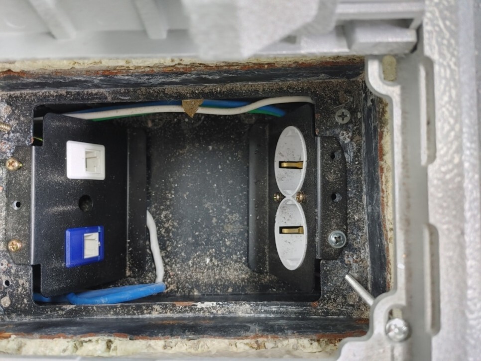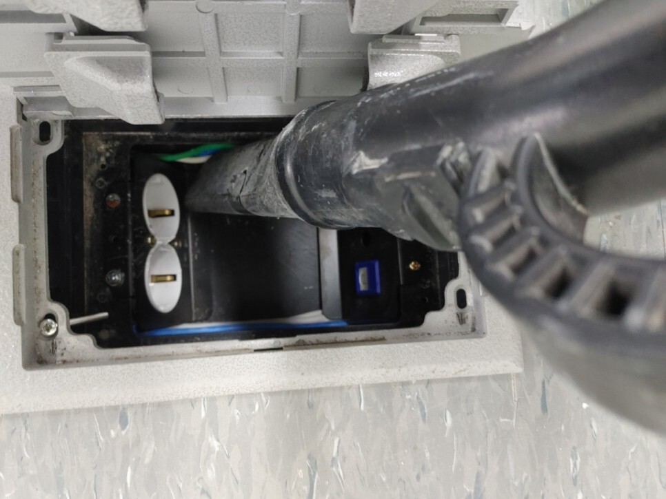 바닥콘센트안에 분진과 먼지를 촘촘하게 제거했습니다.