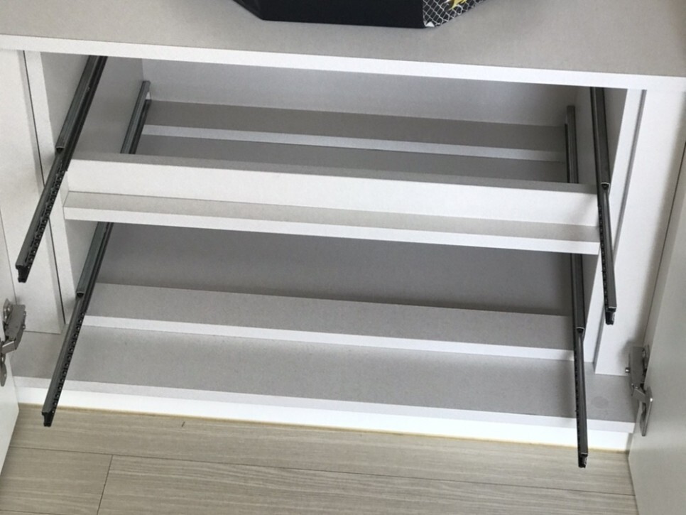 씽크대 수납장과 선반들도 구석구석 깨끗하게 닦았습니다.