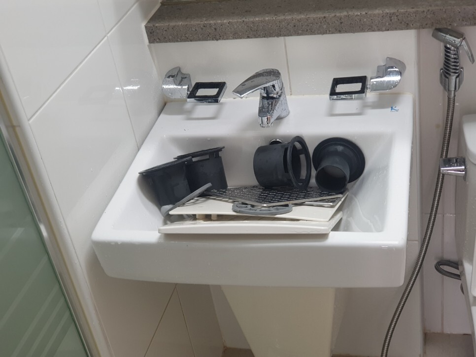 실외기실 역시 배수구 탈거하여 작업을 진행하였구요,