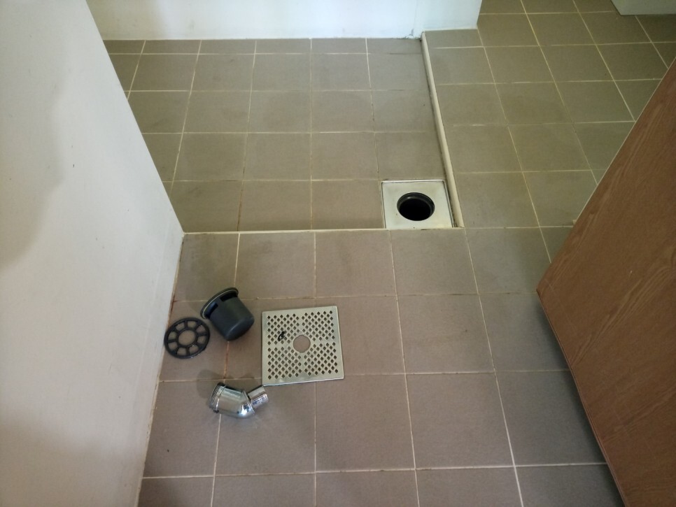 화장실은 천장의 환풍구, 바닥의 배수구를 모두 탈거를