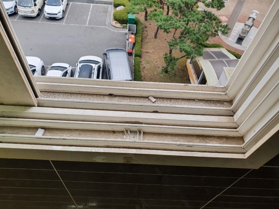 창틀에는오랫동안 쌓인 흙먼지와 낙엽들이 많이 있었어요.