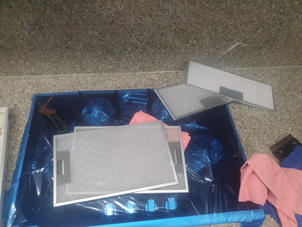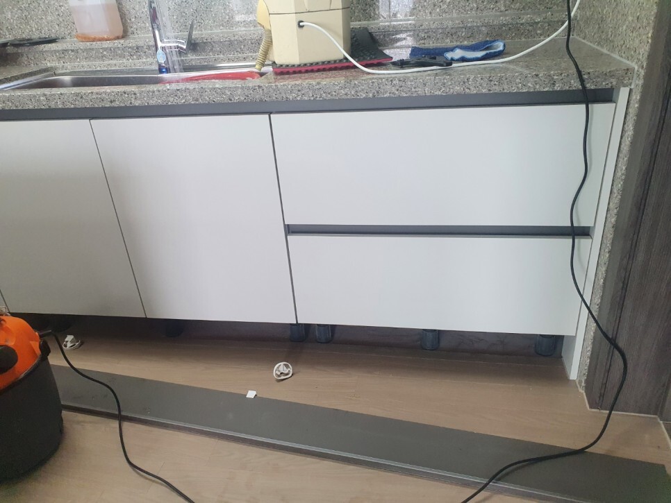 싱크대 걸레받이를 탈거하여 꼼꼼하게 닦았습니다.
