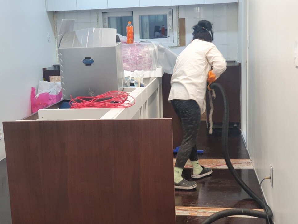 바닥청소를 1~2번 더 반복하여 작업합니다.