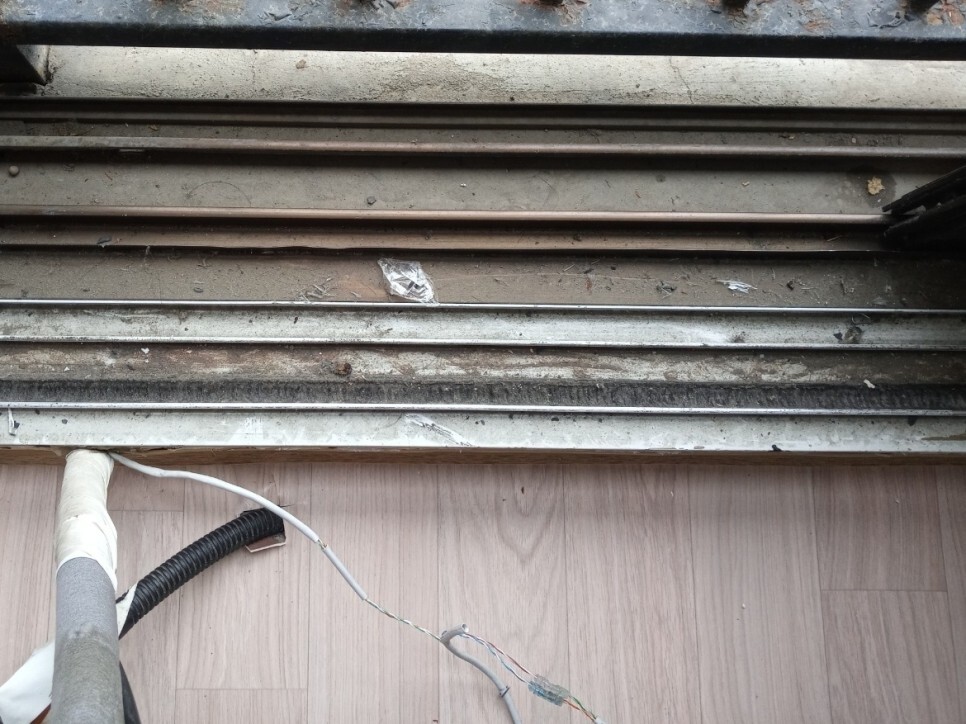 오염물들이 쌓여있는 창틀은