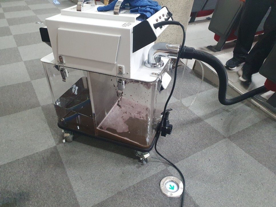 물을 분사하면서 동시에 흡입하는작업을 합니다.