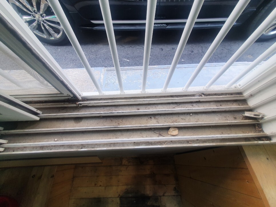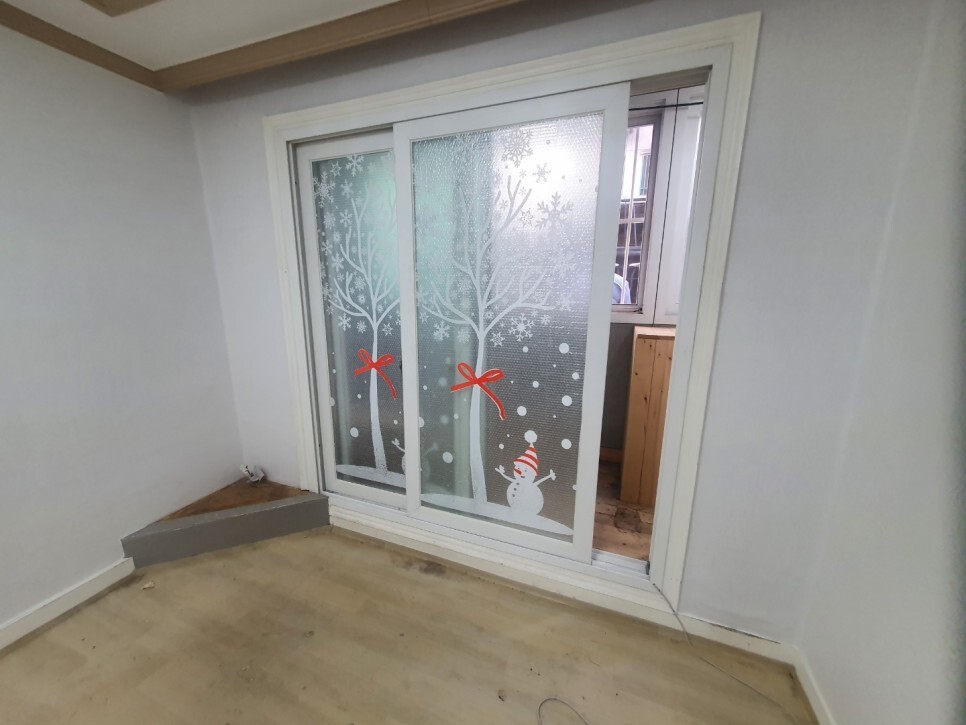 유리창에 뽁뽁이와 시트지 제거작업에