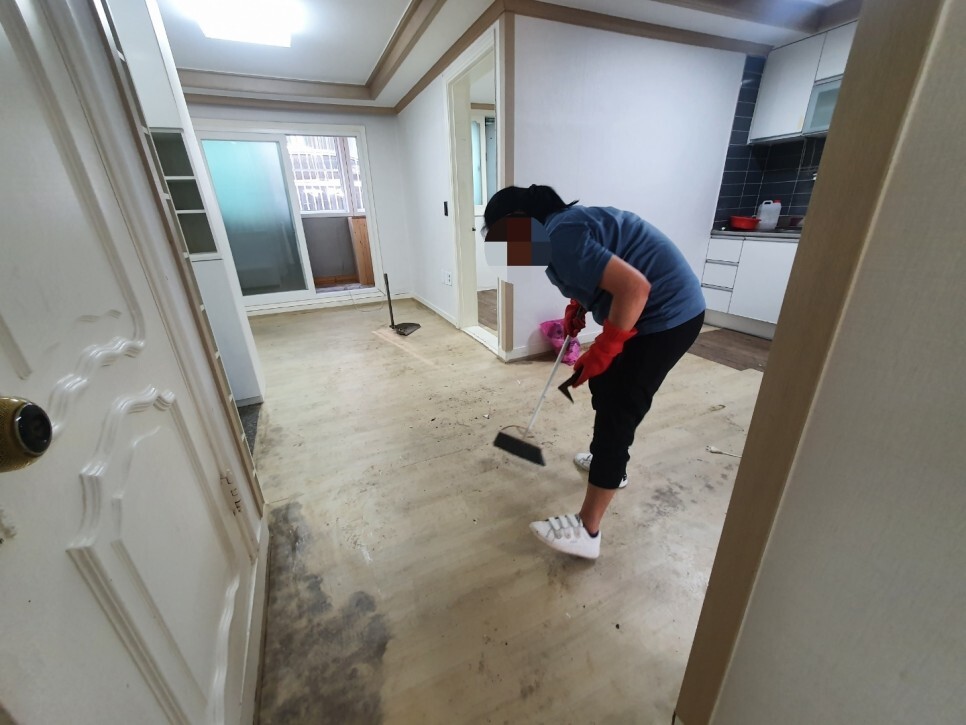 청소 후 장판작업을 하기로 했는데 습기가 많아
