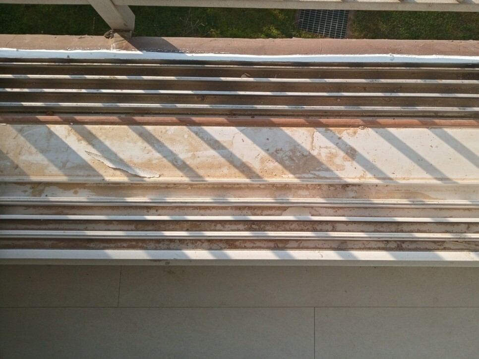 창틀에 쌓인 이물질들은 시간이 지나면 딱딱하게