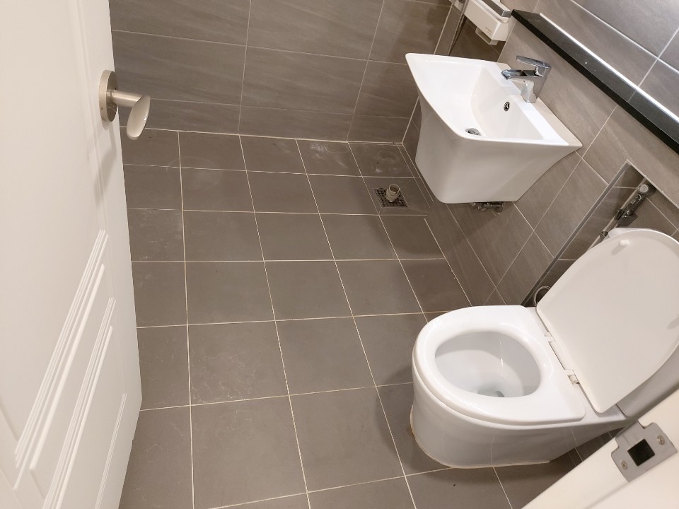 바닥타일, 벽면타일 그리고 변기와 세면대 역시
