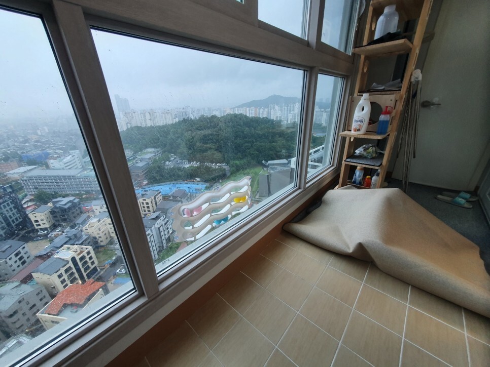몇일 전 베란다 부분보수 차 시공잔해가 있어