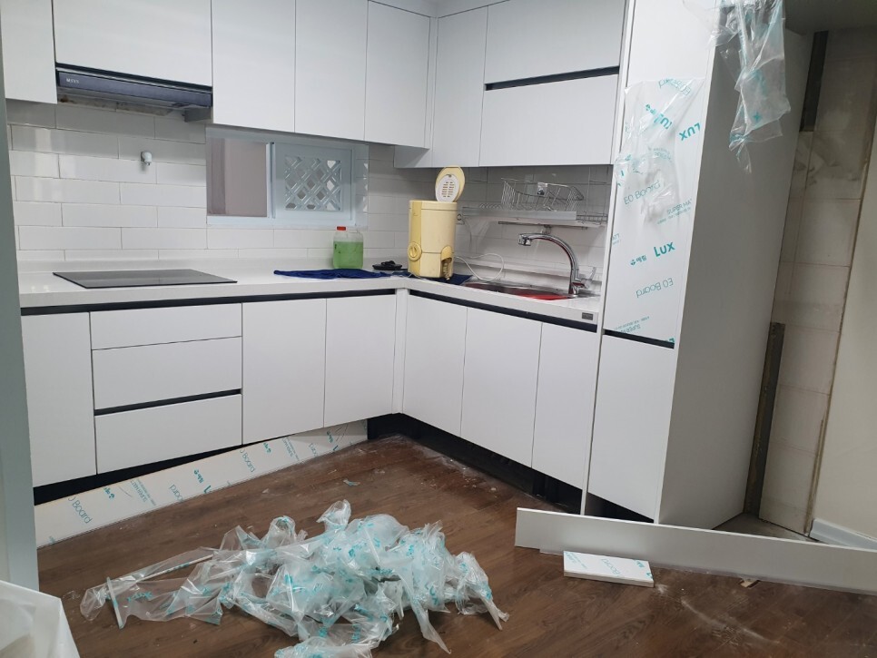 수납장에는 많은 시공먼지들이 쌓여있습니다.