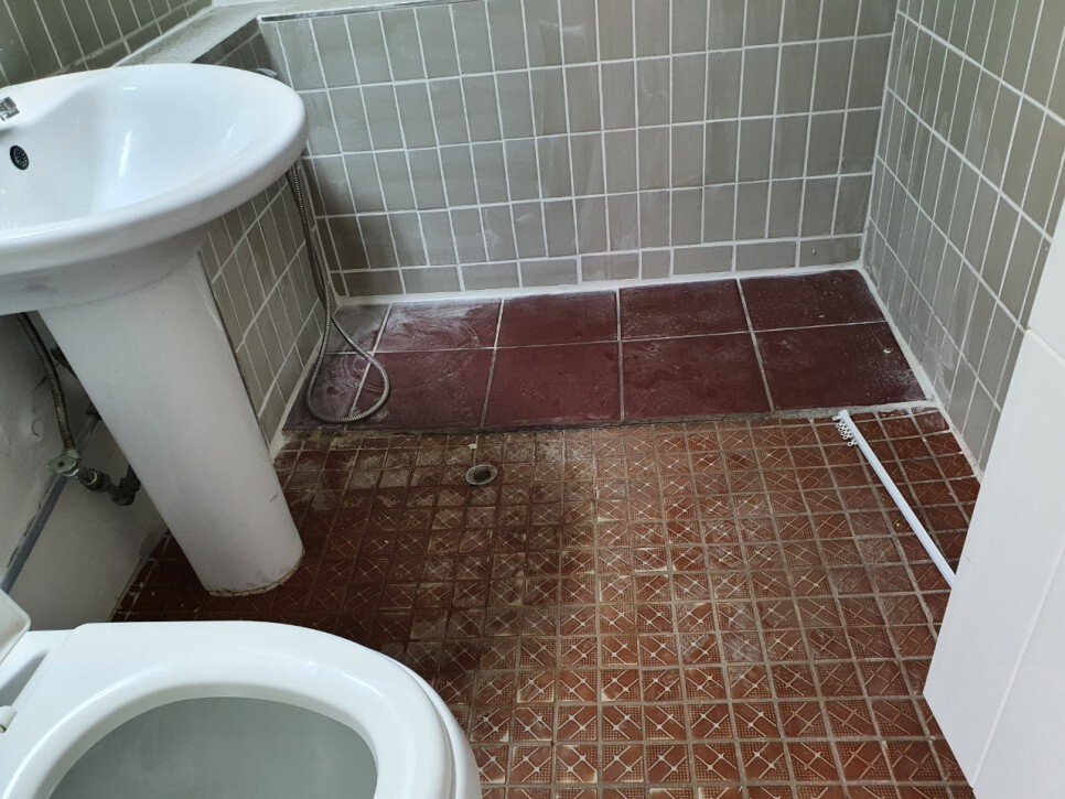 화장실의 분진가루를 물로 무작정 흘려보내게