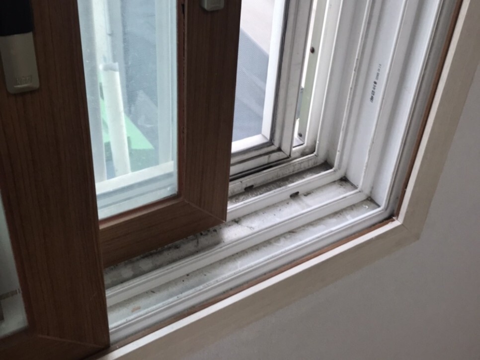 창틀에 쌓인 이물질들은 시간이 지나며