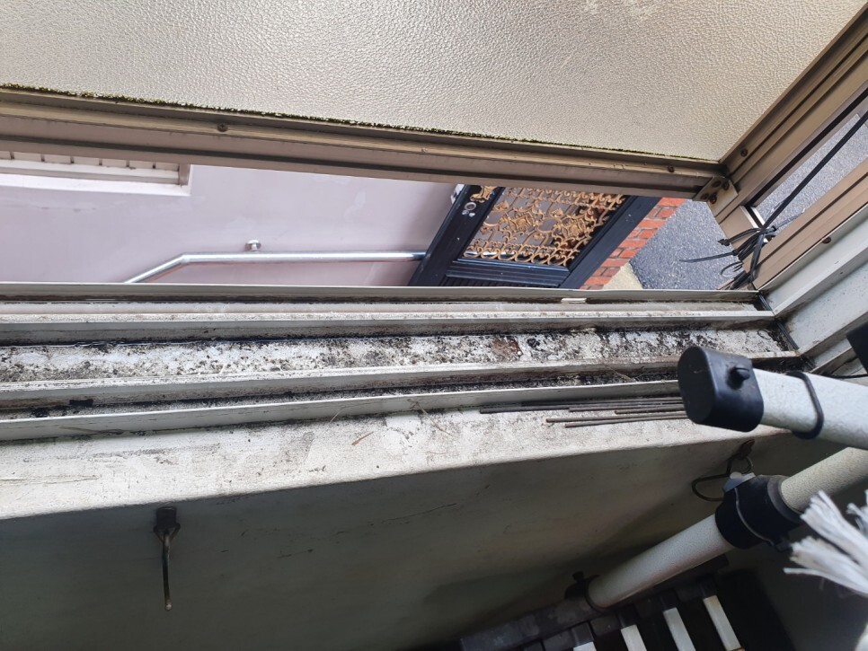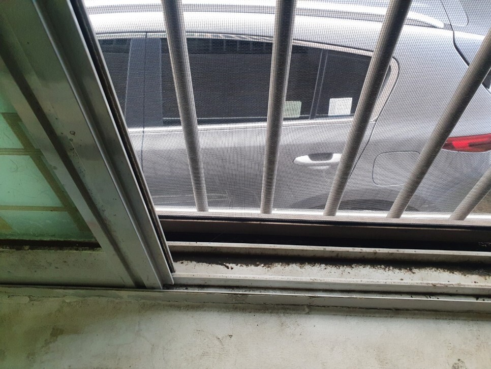 샷시창틀엔 오랜 흙먼지,곰팡이 등