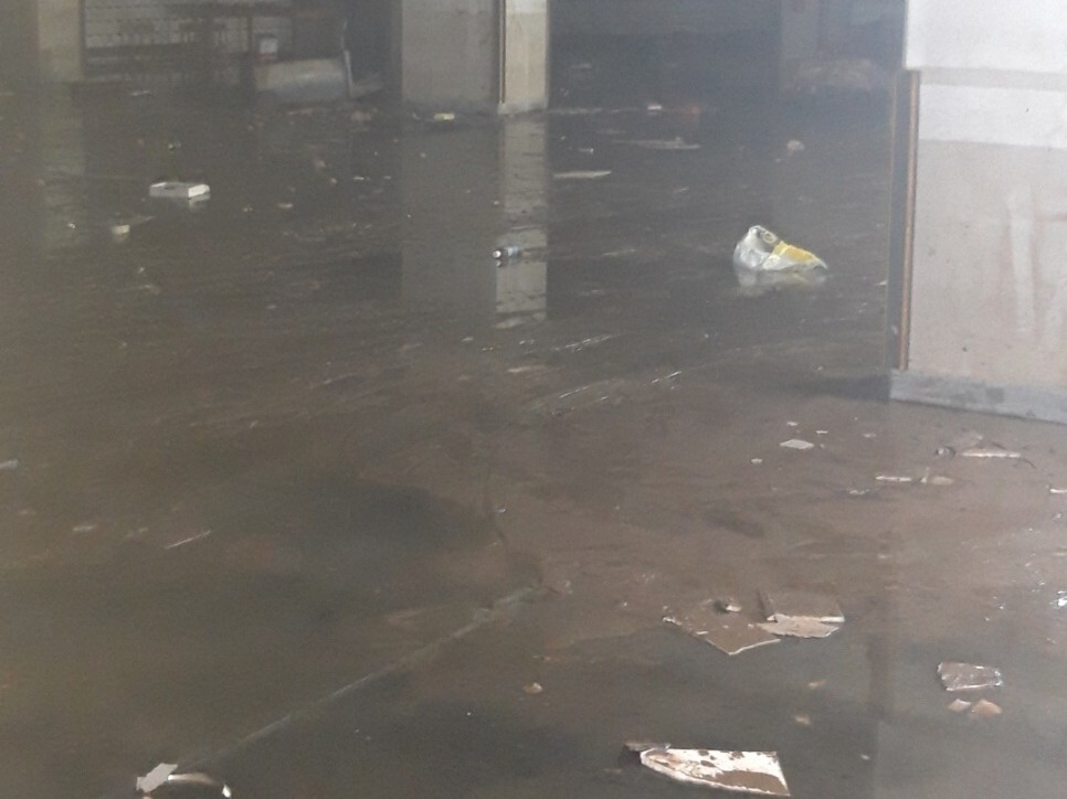 물에 잠긴 고층빌딩내의 지하상가 및 지하주차장,