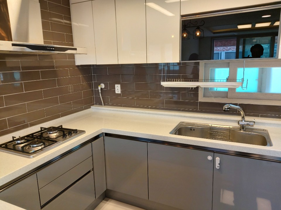 싱크대의 물때도 제거하고 주방의 모든 서랍은 오픈하고