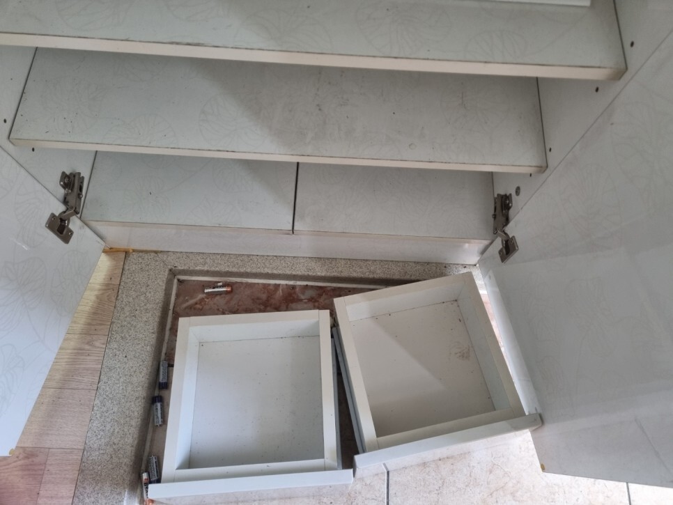 탈가능한 주방후드. 배수구. 하수구. 수납장 등