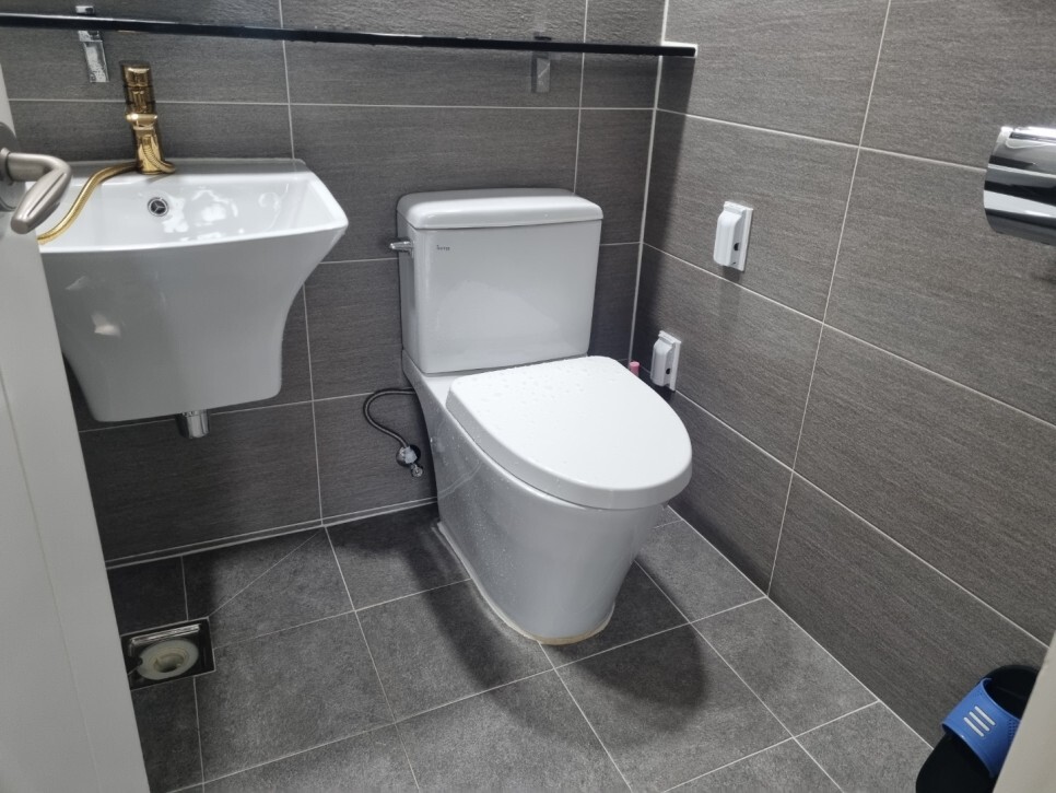 손이 닿아야하고 벽면 ,변기, 새면대, 바닥까지