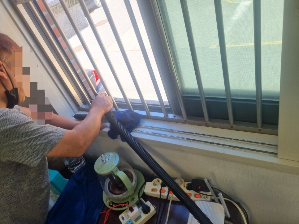 창틀에 곰팡이와 찌든 때가 많았습니다.