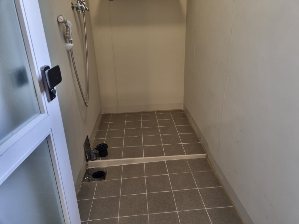 화장실의 샤워부스는 물때로 인해서