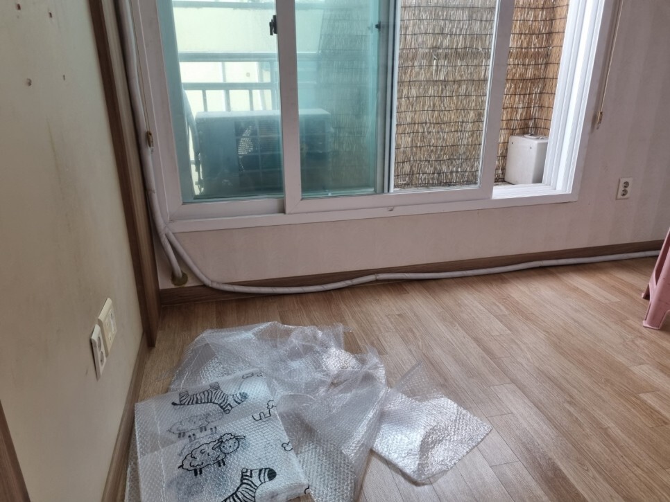 단열을 보완하는 일명 뽁뽁이가 창문마다