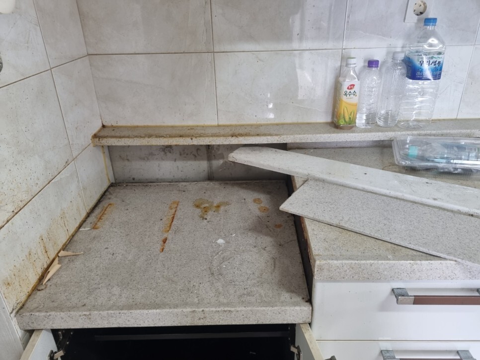 주방후드는 물론 수납장에는 녹슬고 악취가