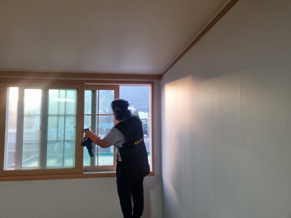 창틀. 문틀 청소가 진행됩니다.