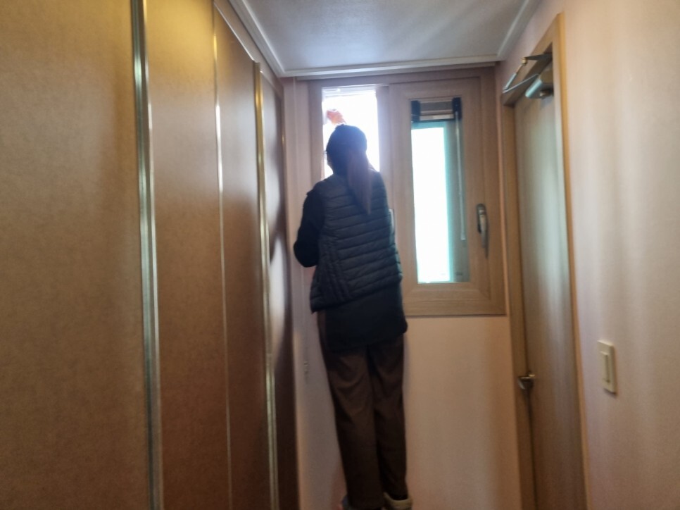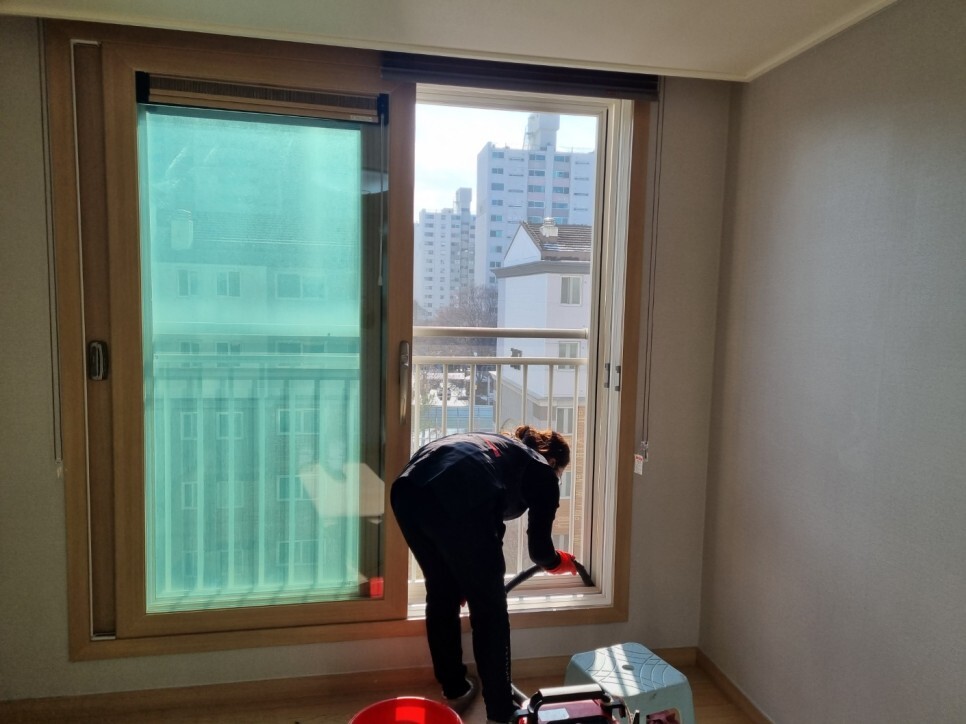 창틀의 먼지들도 청소기로 제거해줍니다.