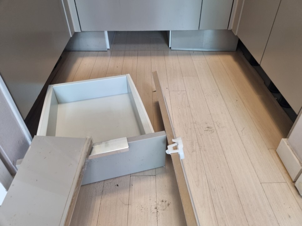 걸름망. 수납장. 걸레받이 등 탈거하여