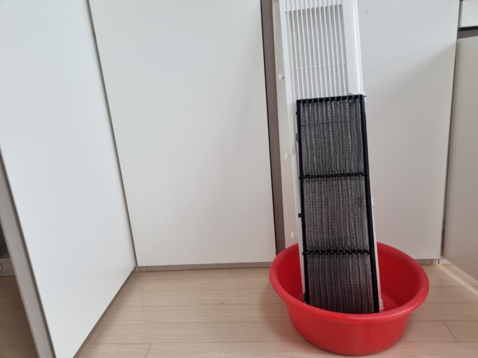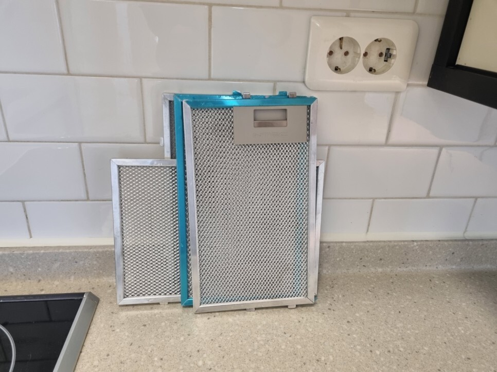 주방청소 전 개수대 내 배수구. 주방후드 망.