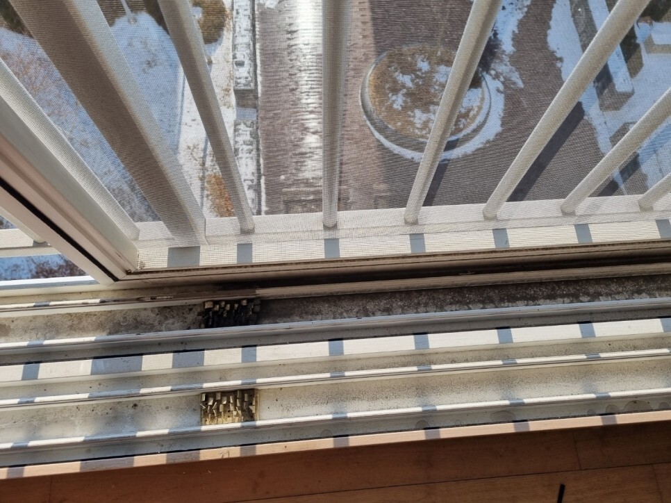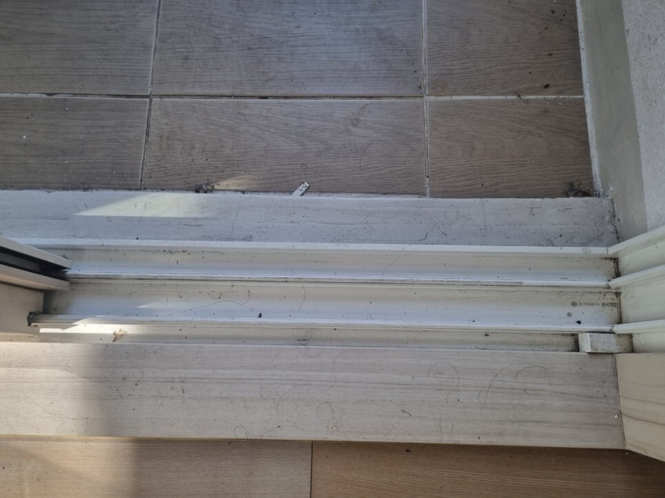 샷시창틀엔 오랜 흙먼지,곰팡이,착색,