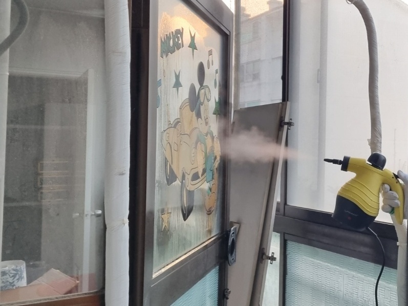 유리와 창틀에도 심하게 묵은때와 찌든때가..