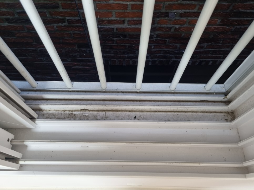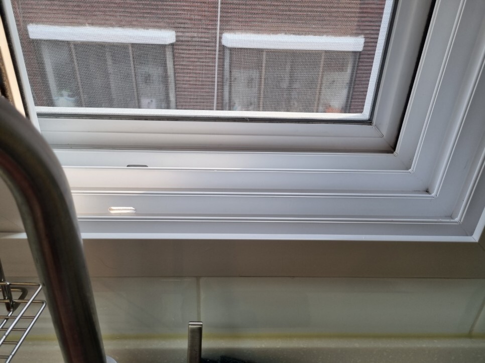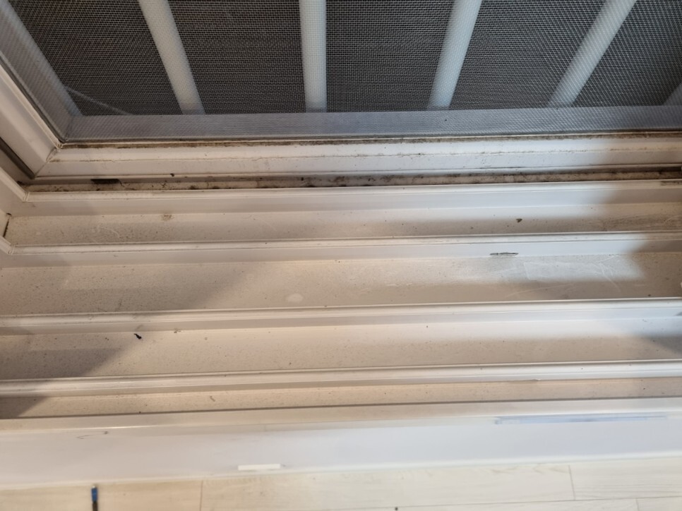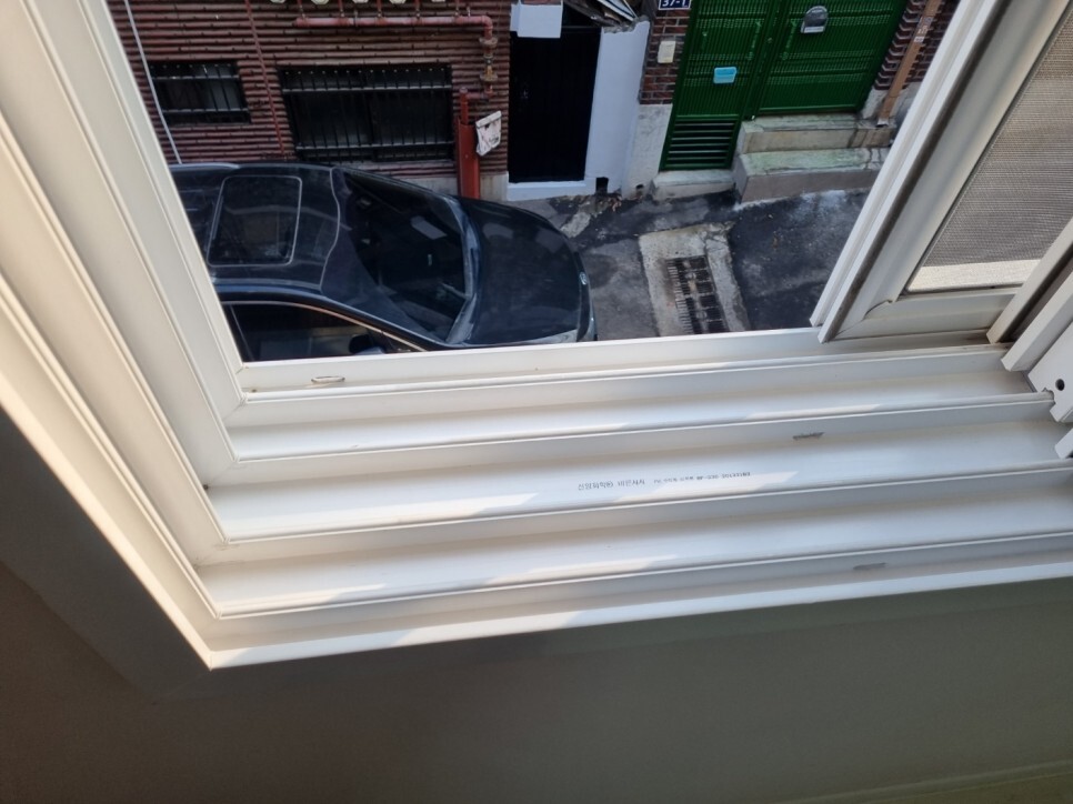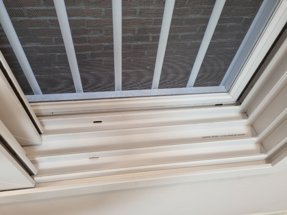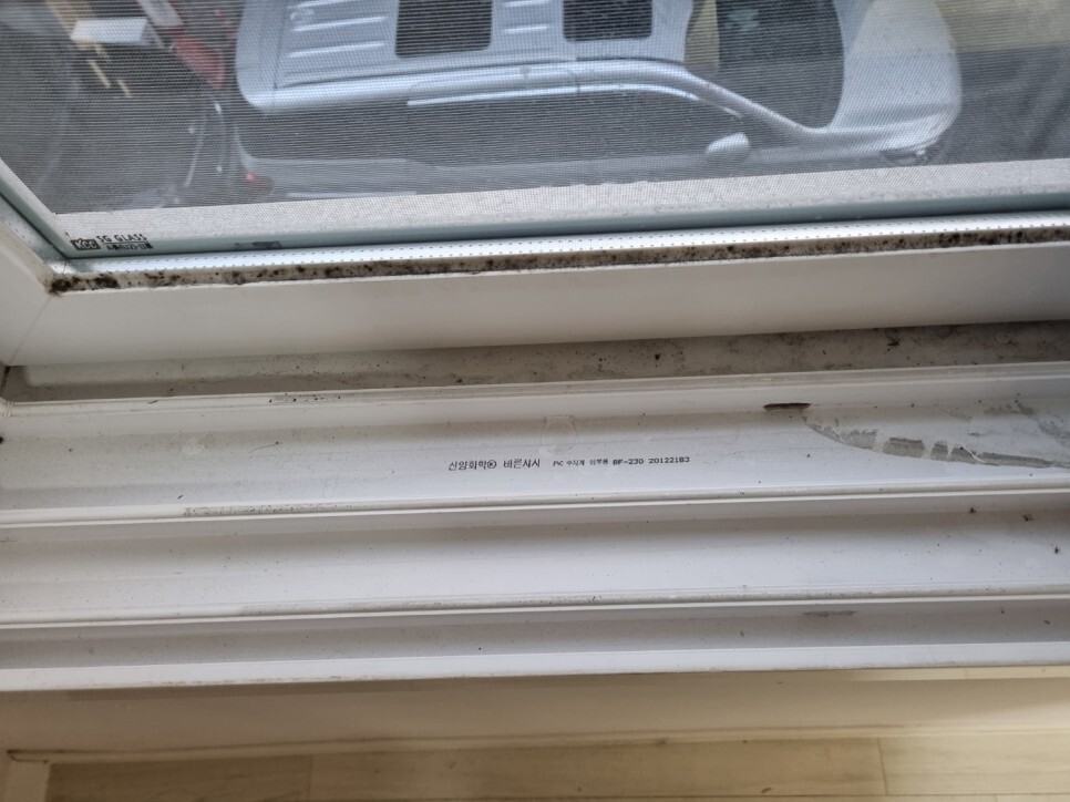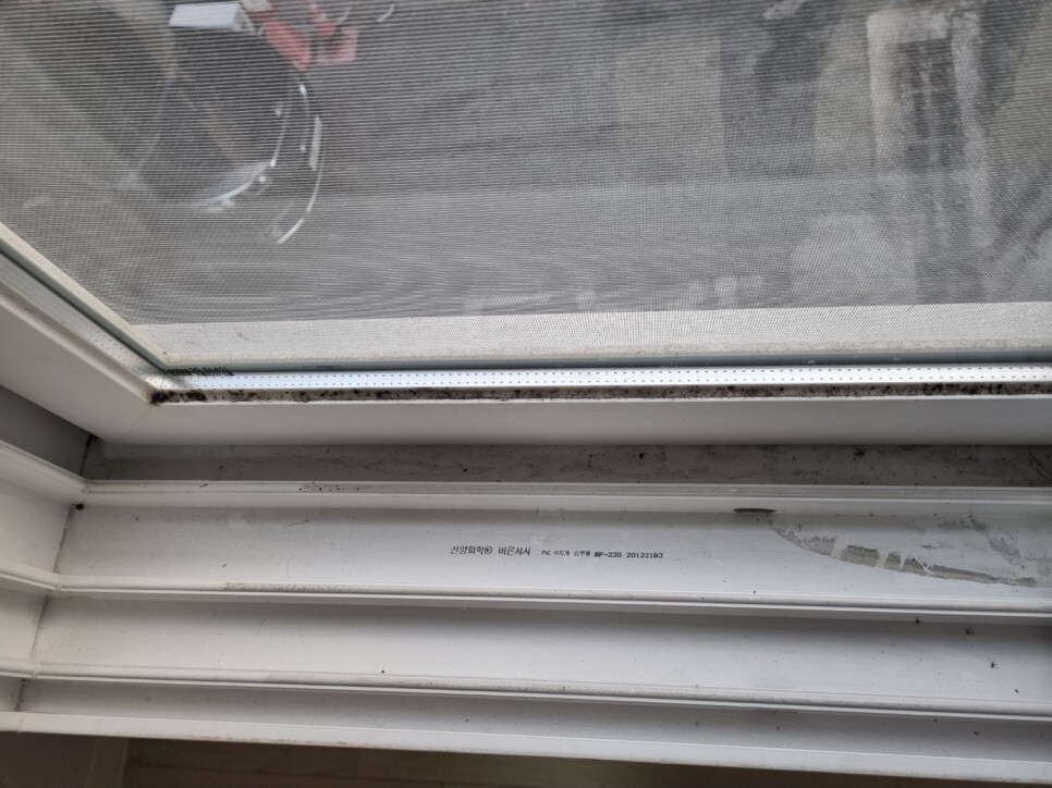 창틀에 쌓여 딱딱하게 굳은 이물질은