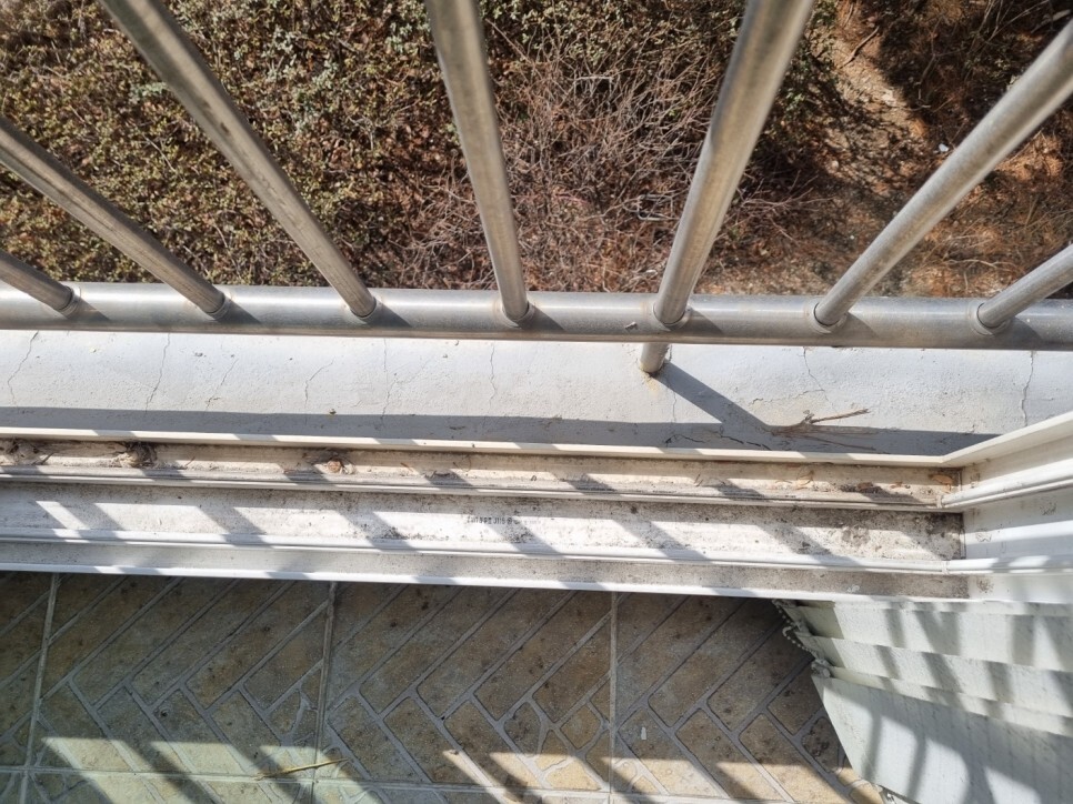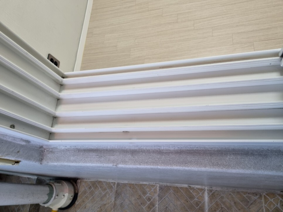 창틀에 쌓여 딱딱하게 굳은 이물질은