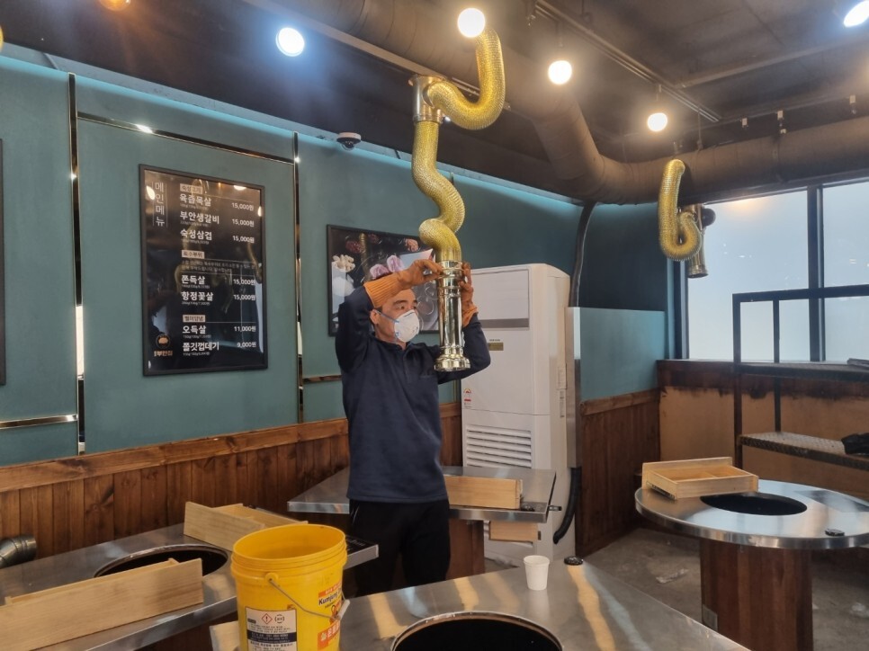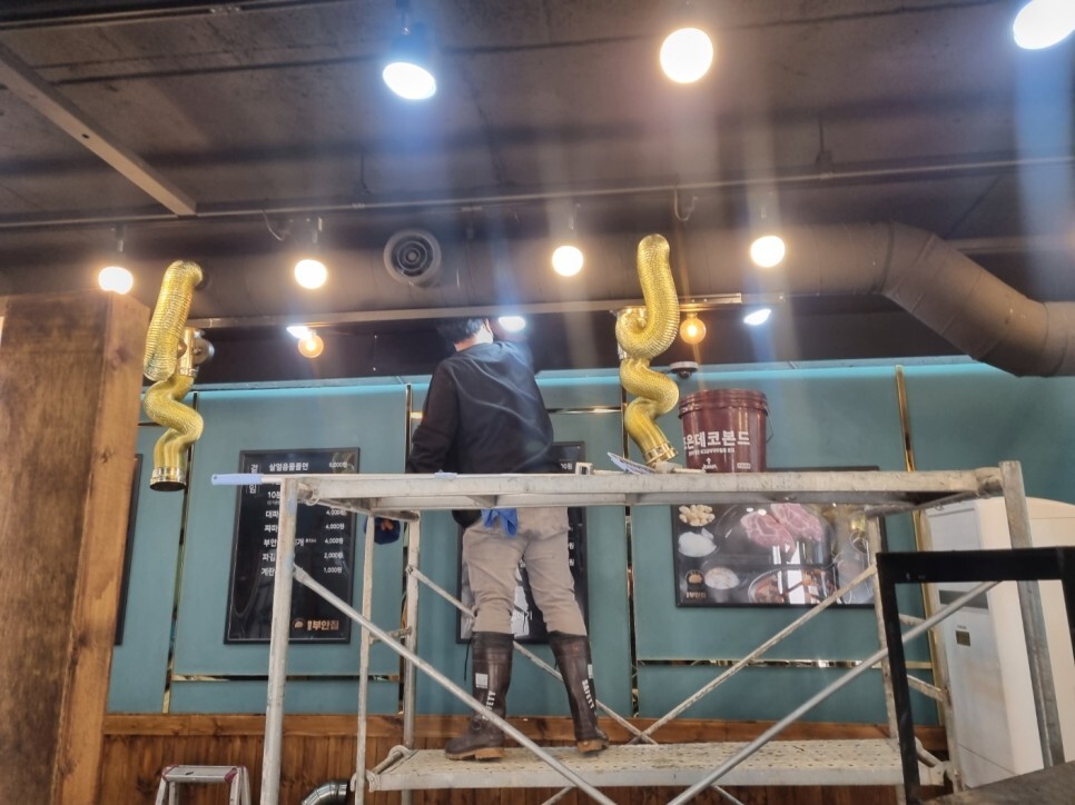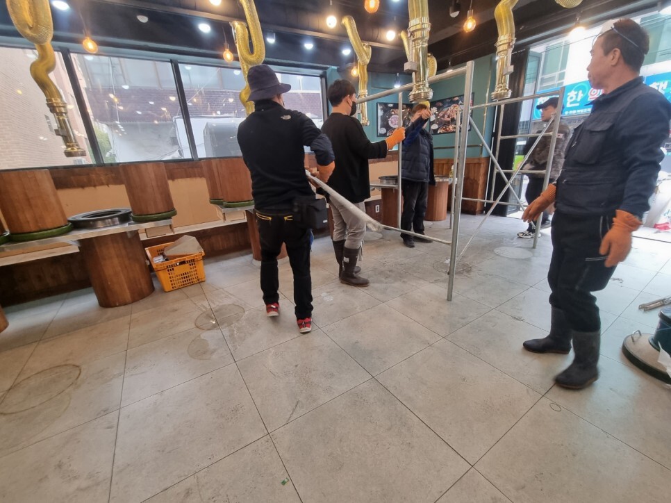 매장내부 천정의 그을음과 분진제거작업을