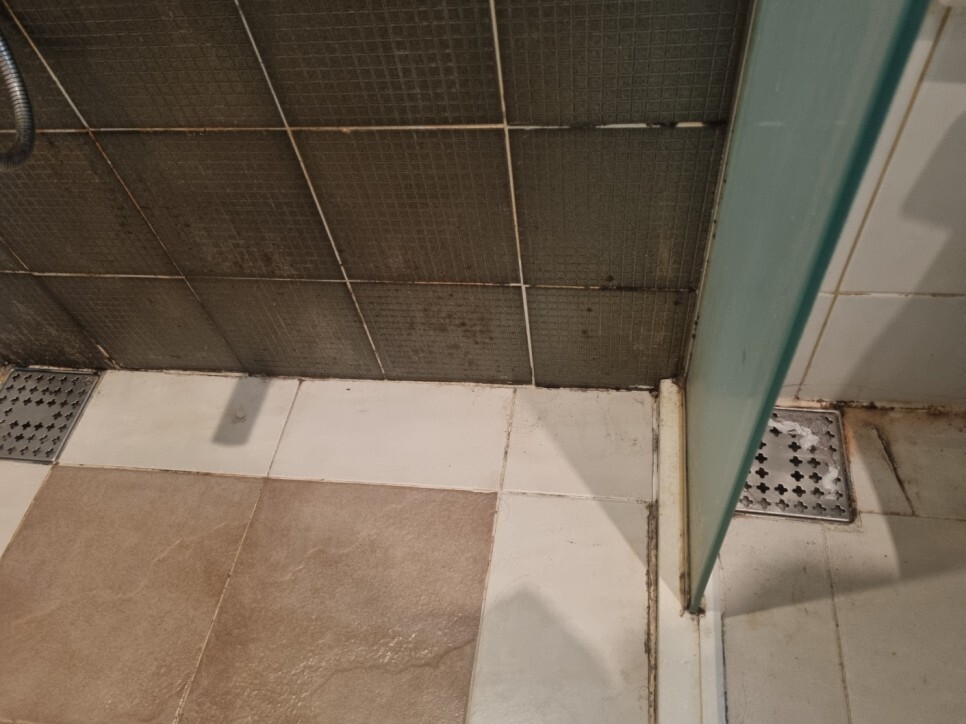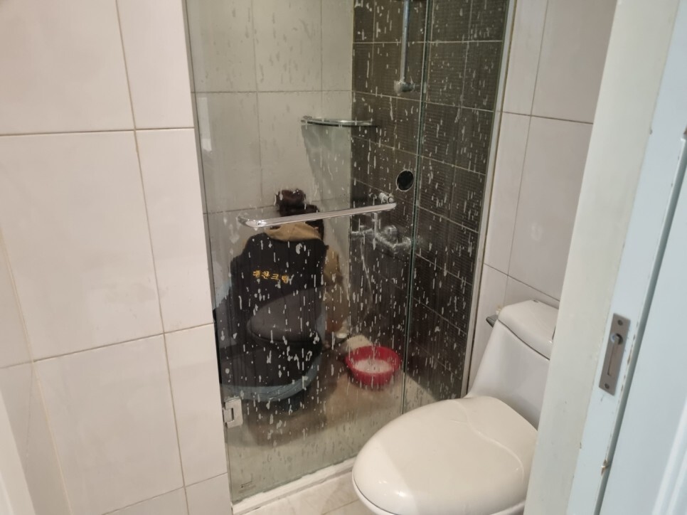 샤워실유리에도 각질,물때가 찌들어거