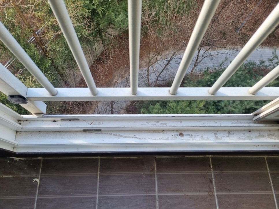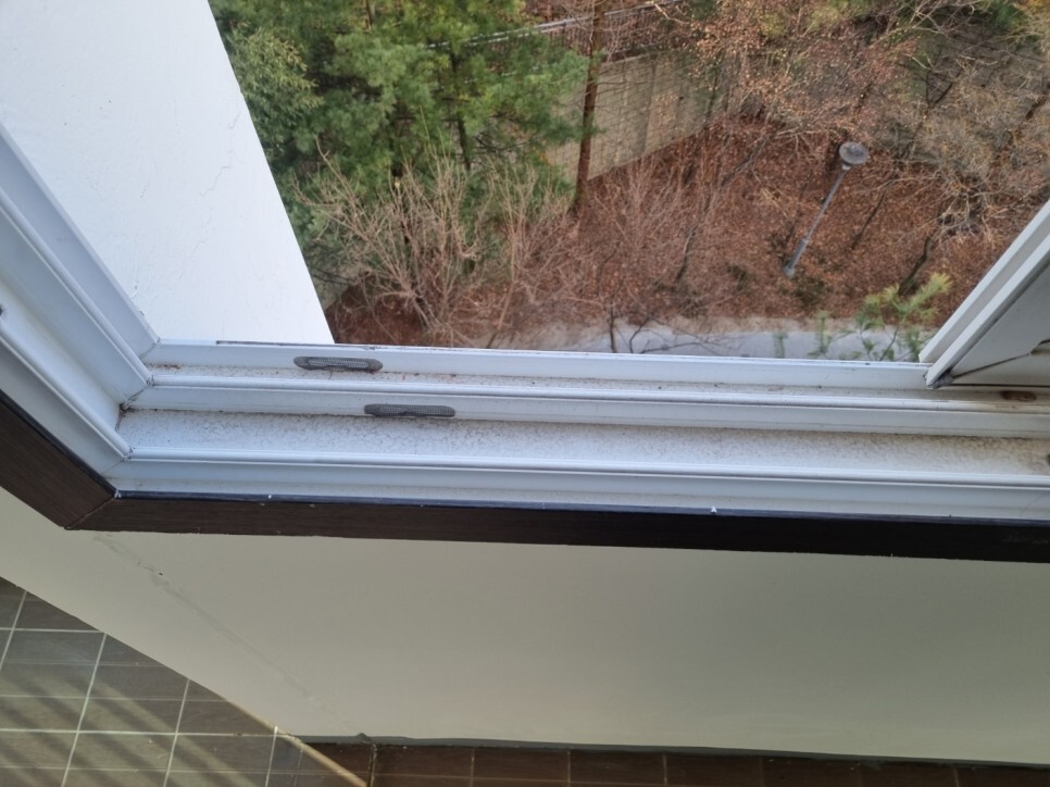 샷시창틀엔 오랜 흙먼지,곰팡이,착색,