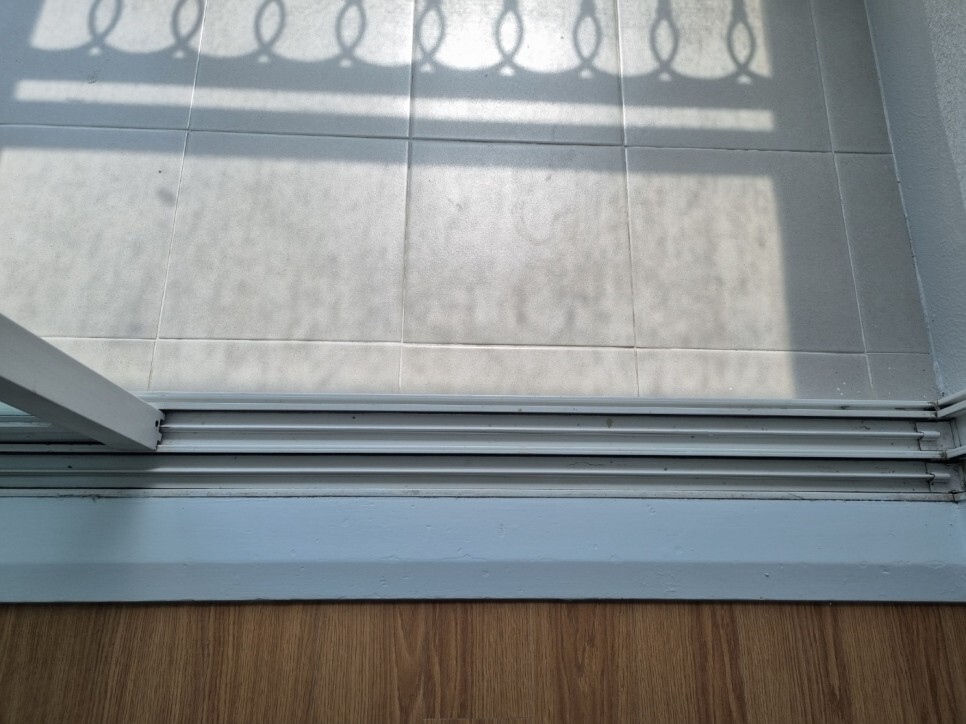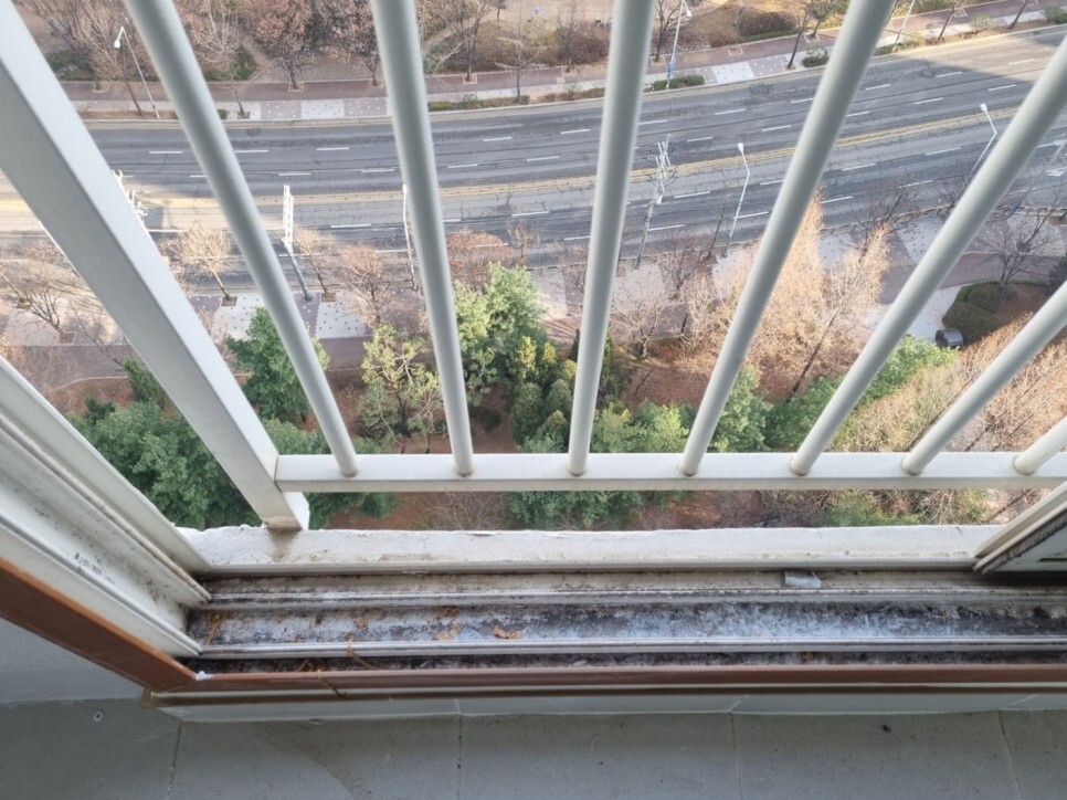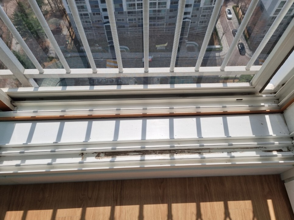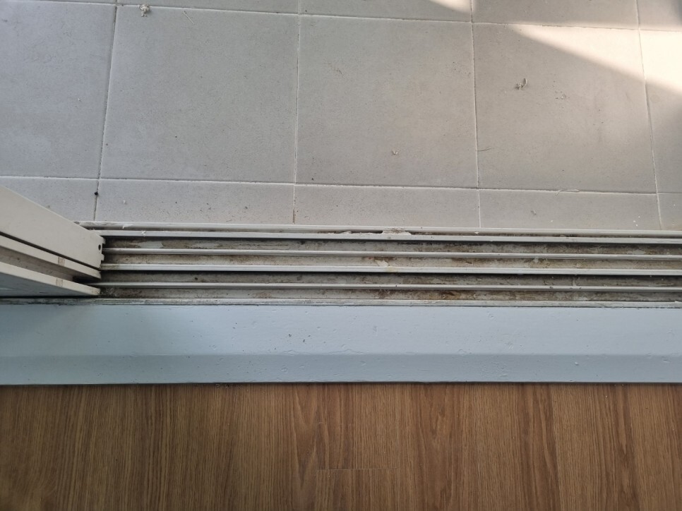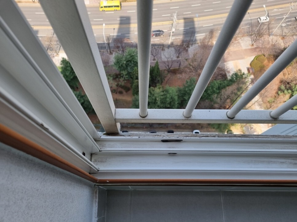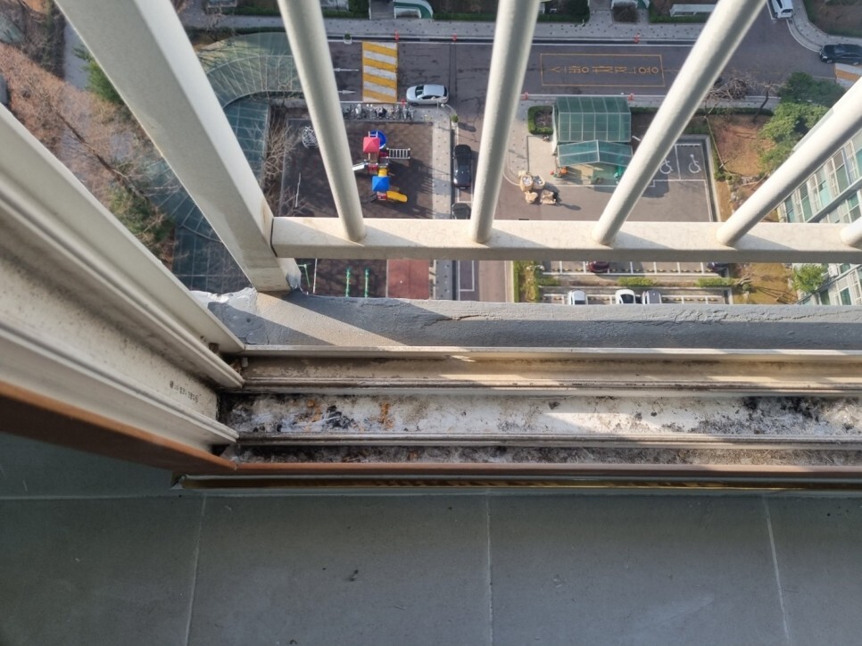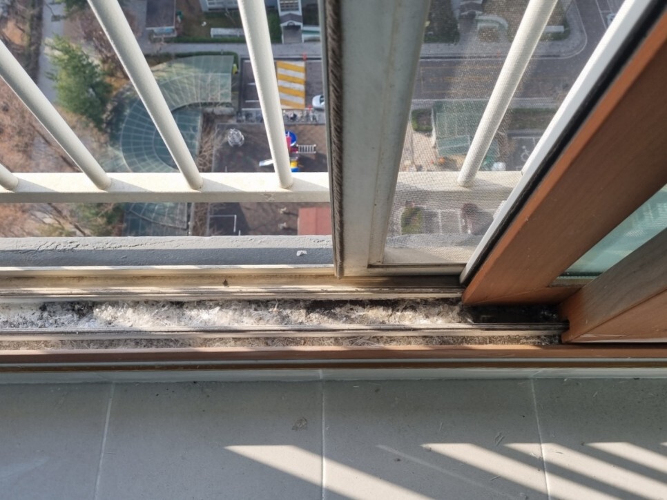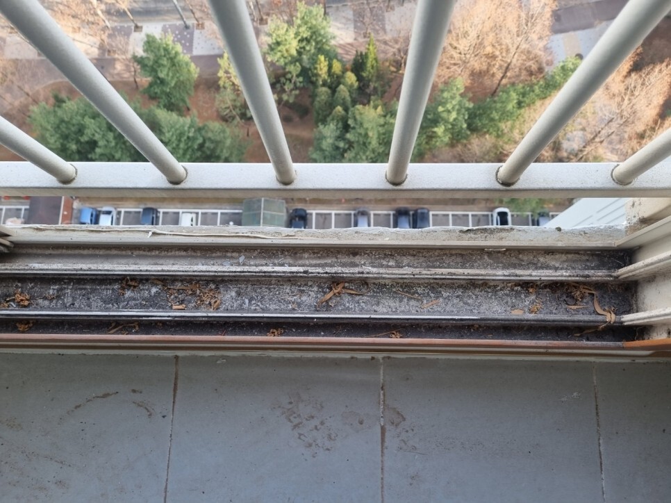 창틀에 쌓여 딱딱하게 굳은 이물질은