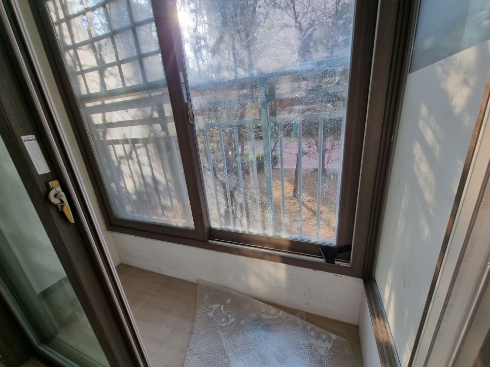 겨울철 단열용으로 유리창에 일명 뽁뽁이를