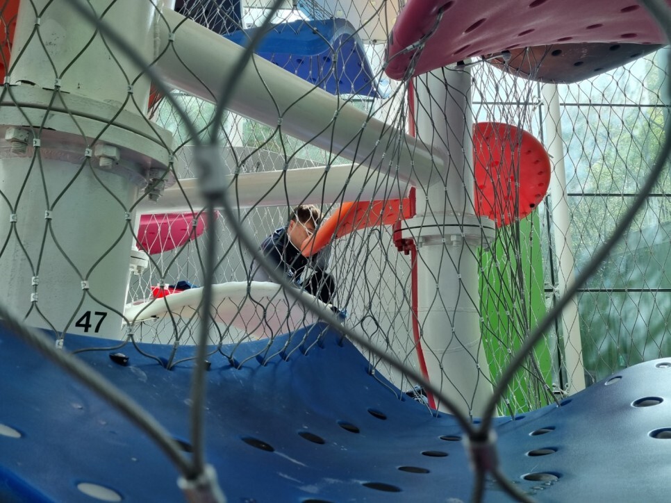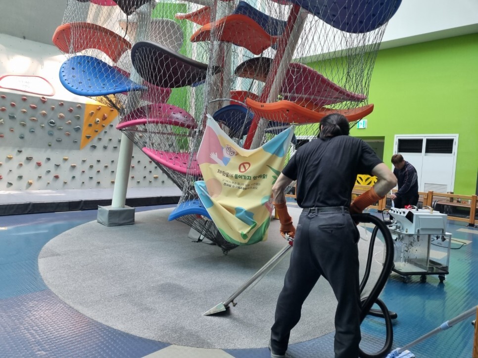어린이놀이기구청소. 오염제거청소.