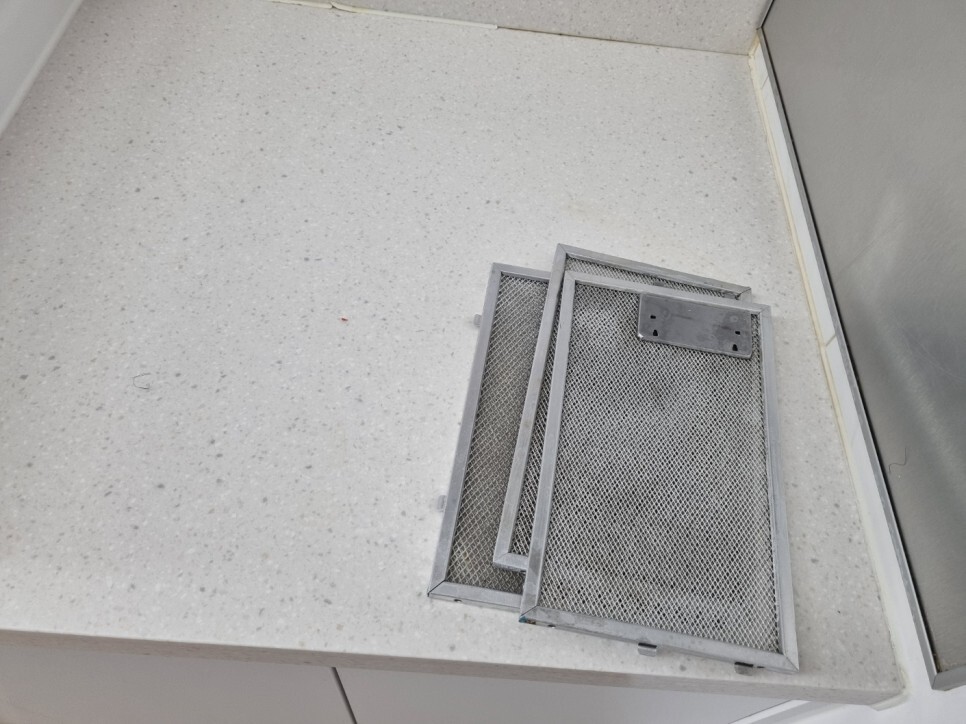 후드망을 탈거하면 내부에 기름덩어리와