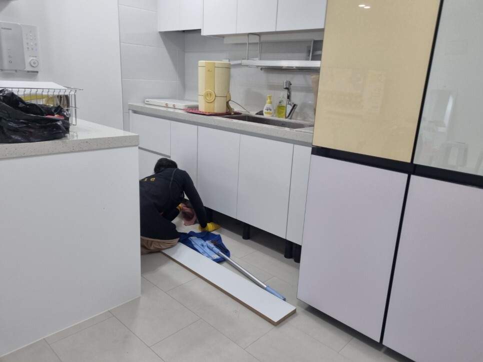 씽크대 걸레받이를 탈거해서 쓰레기를 치우고
