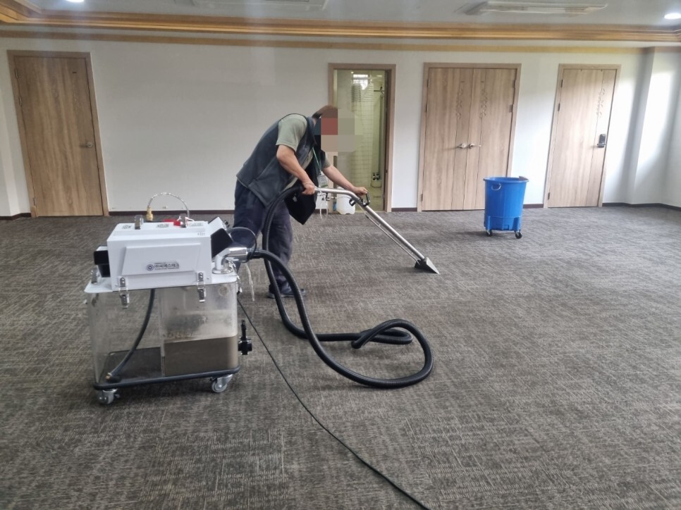 세척작업 후에는 카페트오염물을 흡입한