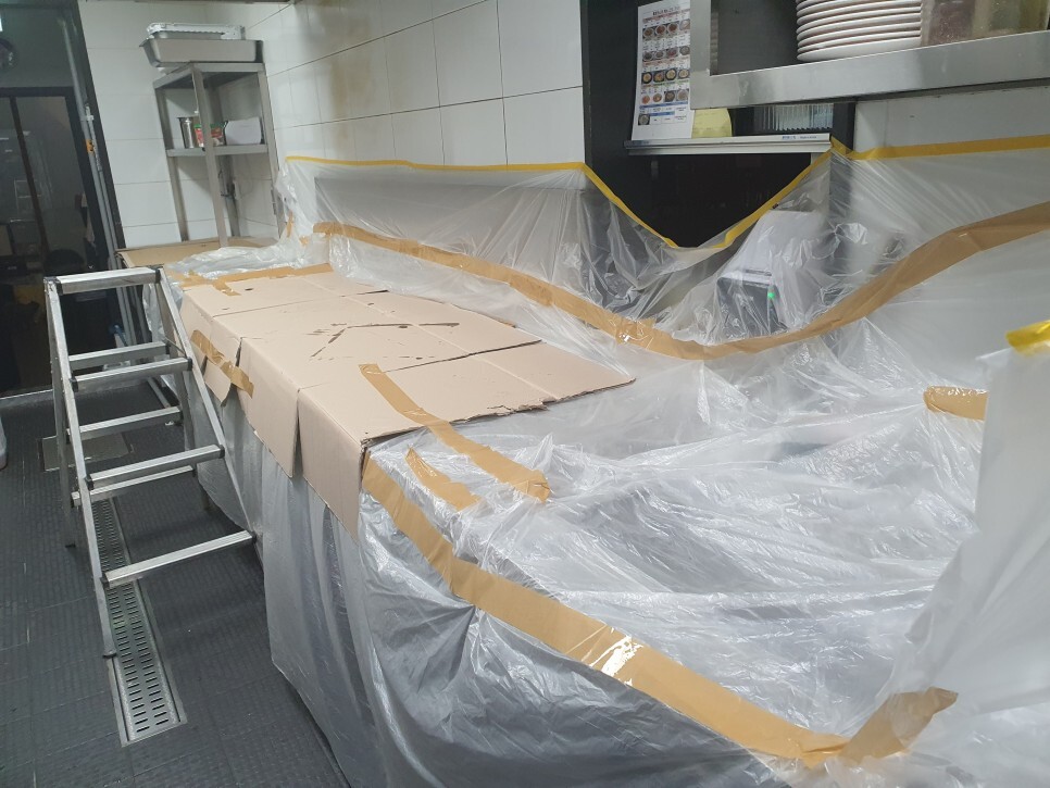 비닐 보양지를 확실하게 하고 작업에 임합니다.