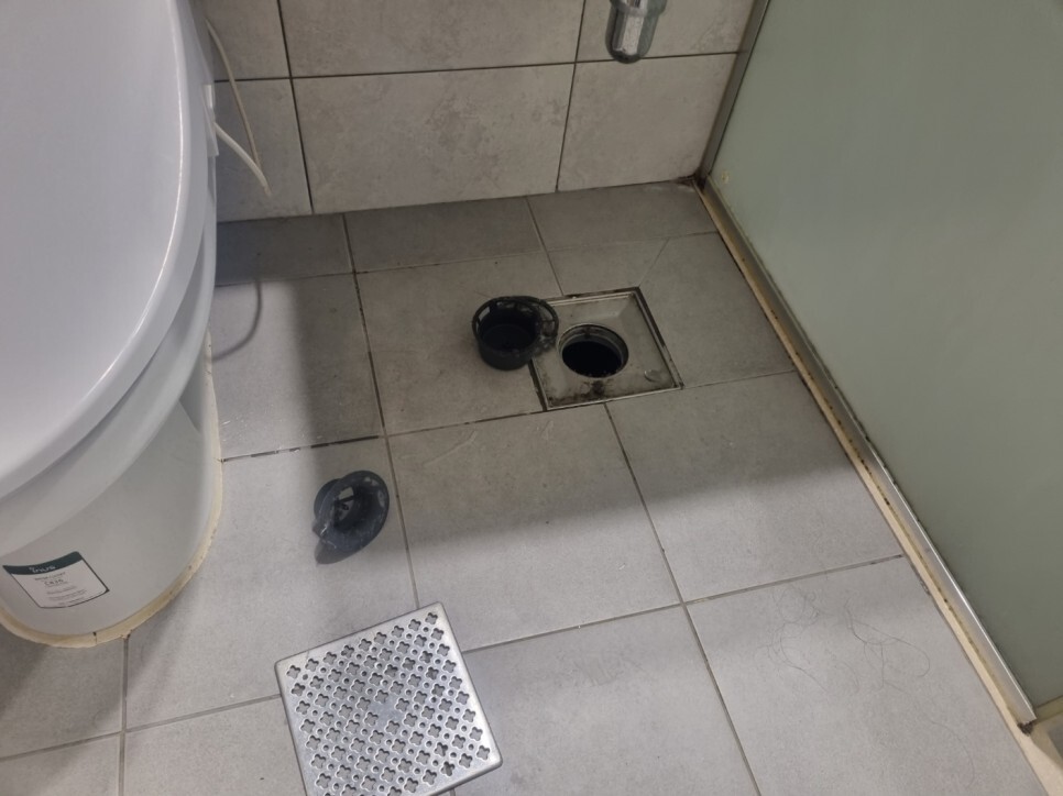 배수구를 탈거하여 배수구안의 오염때문에