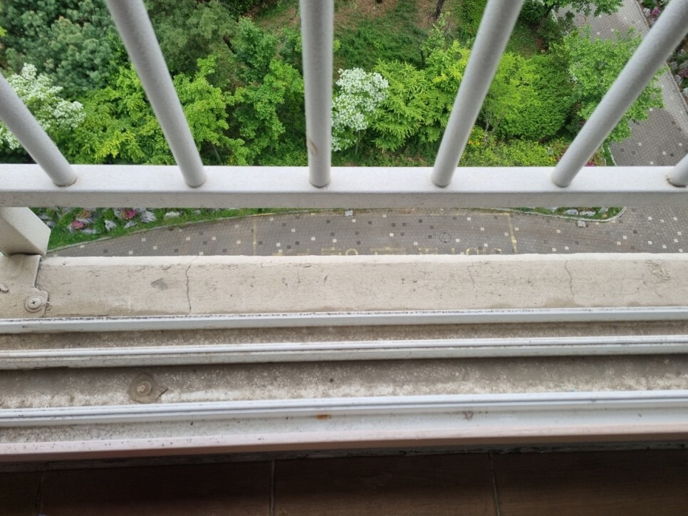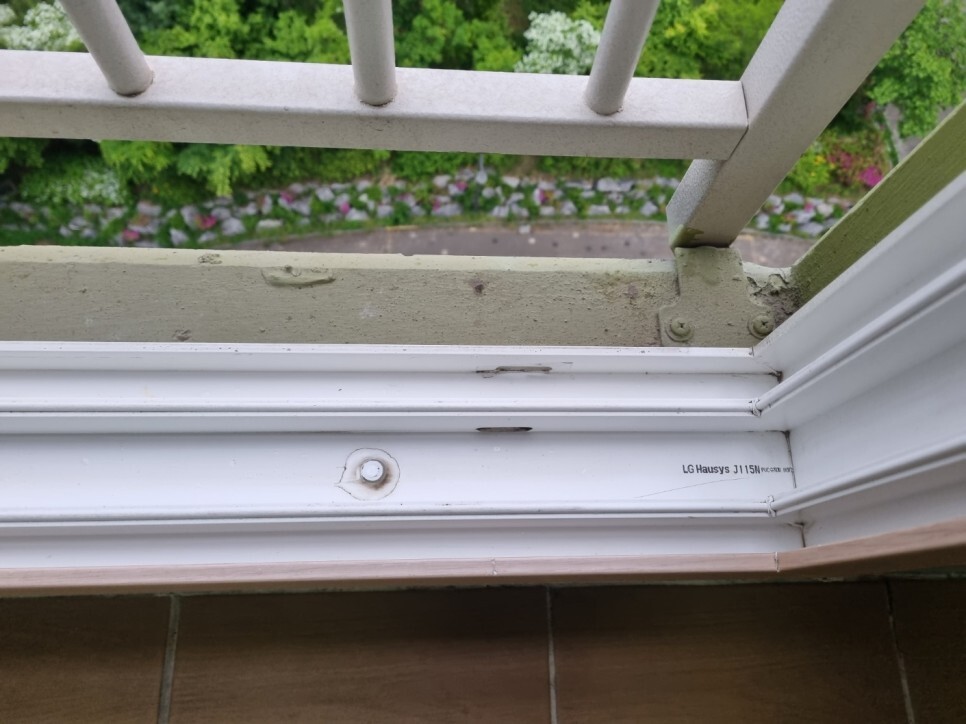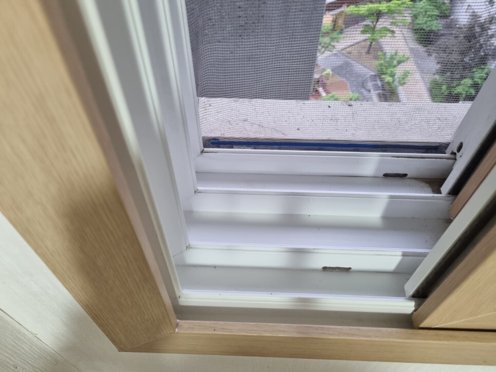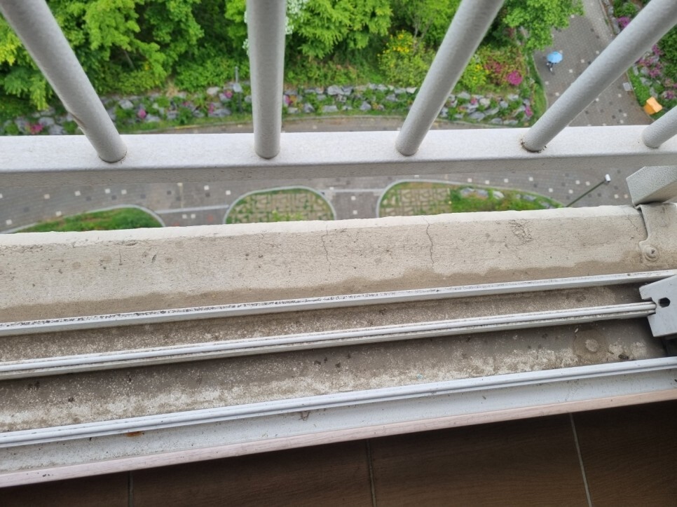 창틀에 쌓여 딱딱하게 굳은 이물질은
