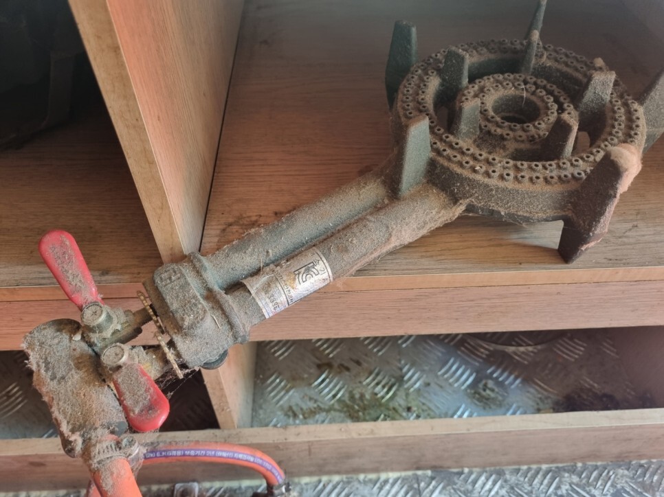 화구는 기름과 먼지가 두텁게 쌓여있어