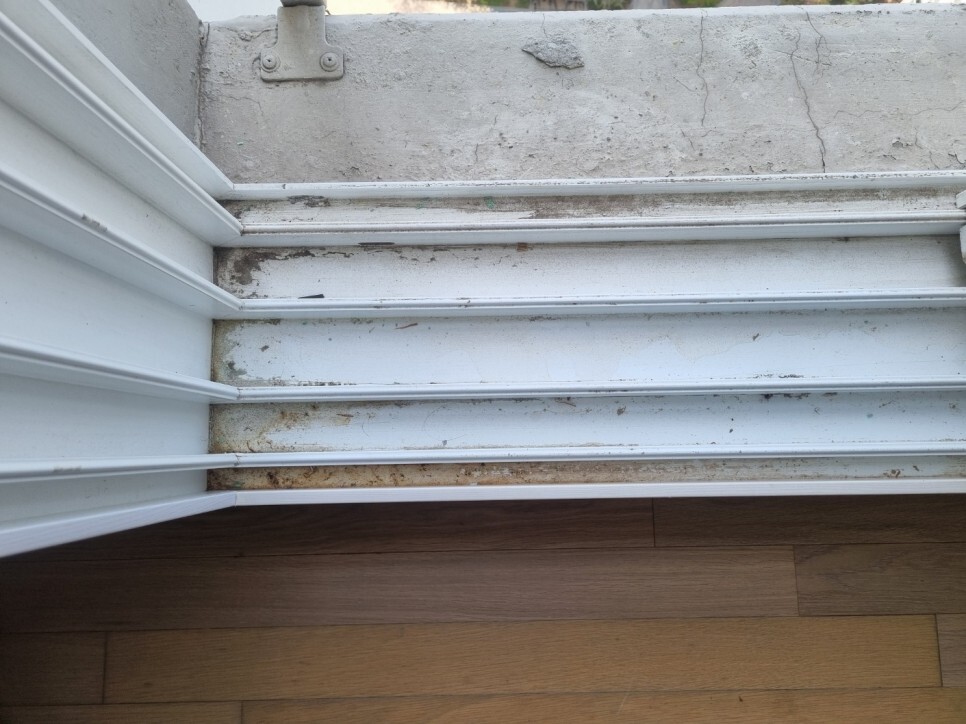 창틀의 많은 오염원들이나 많이 굳어져 있는