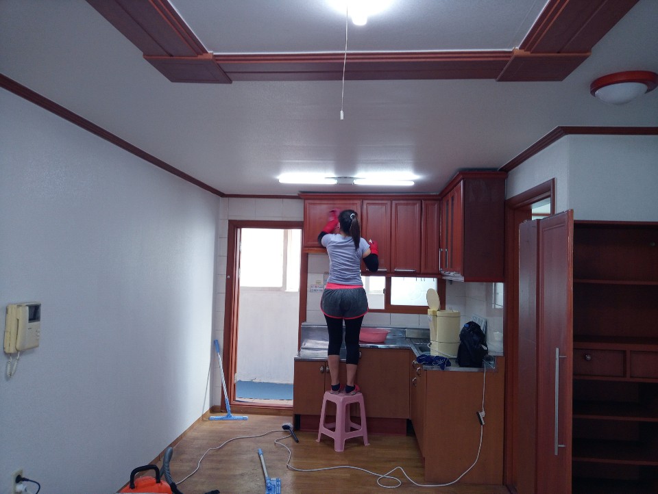 청소가 미비된 곳이나, 분리청소로 수납장/ 환풍기/주방용품/천장의등 등등....