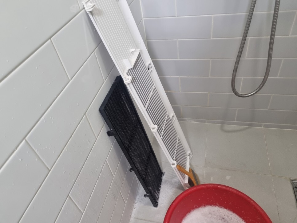 에어컨필터탈거 후 먼지제거청소와